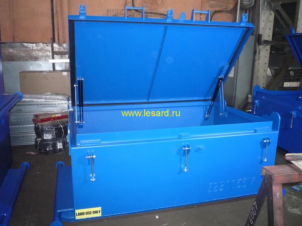 Имеют герметичную, открывающуюся с помощью усиленных газовых пружин крышку, запирание крышки — откидные болты.