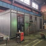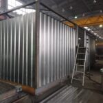 По индивидуальному чертежу изготовлены корпуса контейнеров, без крыши, габаритами (ДхШхВ) 8700х3080х3000 мм. Выполнено наращивание стенок по высоте до 3000 мм. Основание утепленное, с усилениями. Настил пола – лист стальной рифленый «ромб» 4мм. Корпуса дорабатываются в дальнейшем Заказчиком самостоятельно.