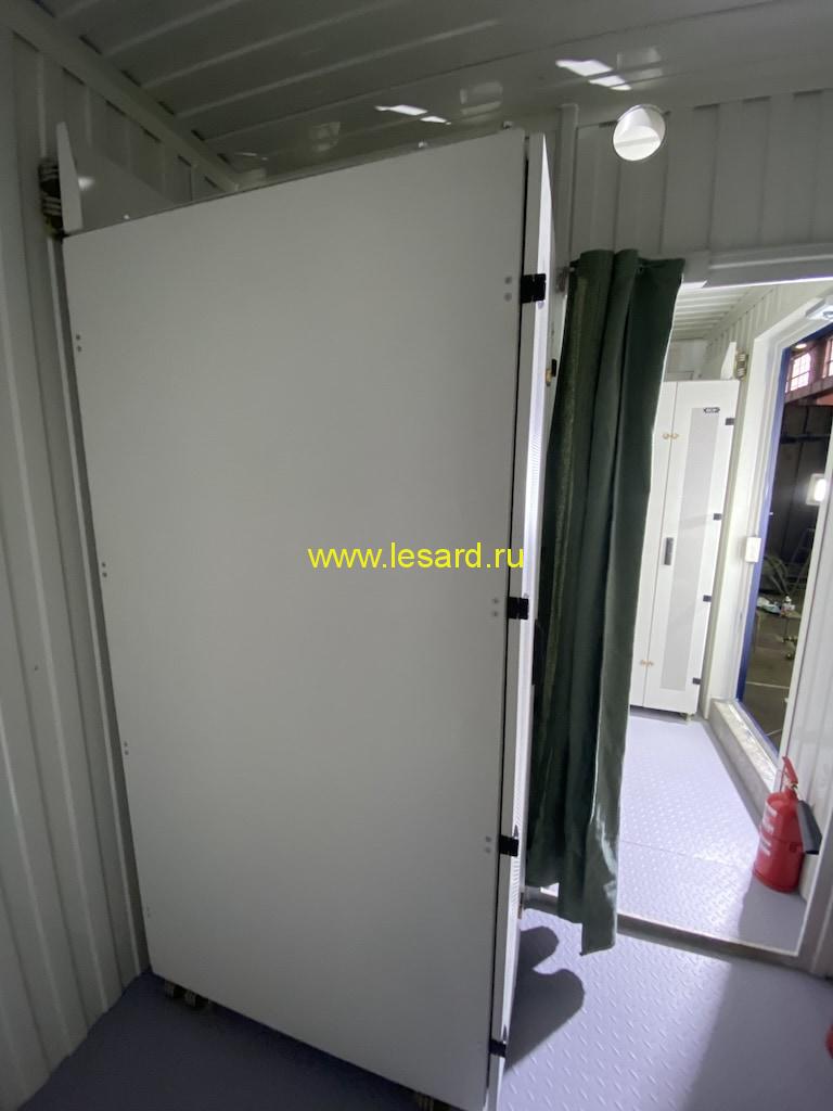 Утепление блок-контейнера — 100 мм напыление пенополиуретана.