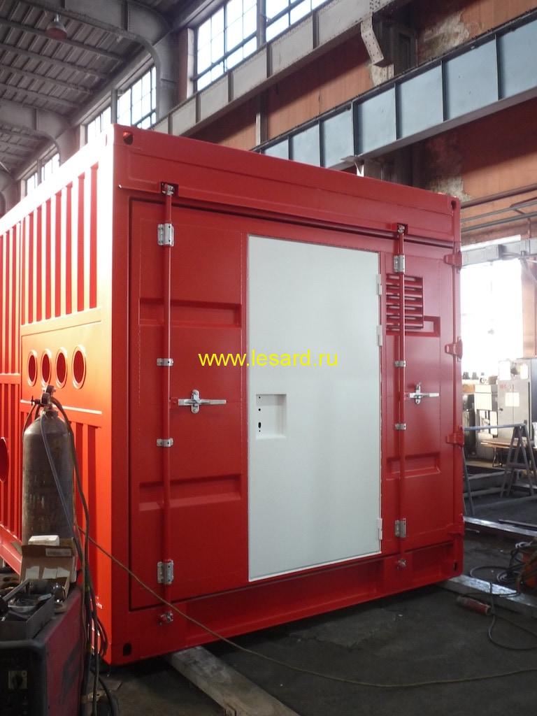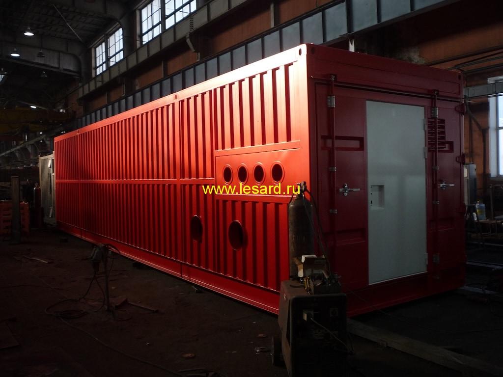 По индивидуальному проекту изготовлен утепленный защитный изотермический кожух габаритами 1219х2800х2896 мм (типоразмер 40 футов с увеличенной шириной) для размещения (защиты от внешней среды) оборудования пожаротушения (ПЭСПЗ). Кожух оснащен системами освещения, отопления, вентиляции. Диапазон рабочих температур эксплуатации — от -55°С до +40°С.